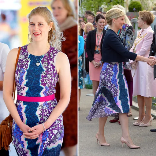 Во время прошлогоднего визита в Бирмингем на Игры Содружества леди Луиза надела платье Peter Pilotto из гардероба своей матери. Она сочетала женственный наряд с абстрактным рисунком с классическими белыми кроссовками. 58-летняя София Эдинбургская в свою очередь, появившись в платье на выставке цветов в Челси в мае 2015 года, дополнила наряд лаковыми туфлями на каблуке нюдового оттенка и жакетом-болеро с рукавом три четверти. Нам такой вариант понравился больше – Луиза не угадала с длиной и асимметрией подола.