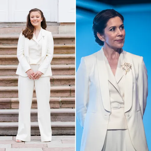 16-летняя принцесса Дании Изабелла в 2022 году отпраздновала конфирмацию в эффектном белом брючном костюме своей матери, 51-летней кронпринцессы Марии, добавив к ансамблю брошь королевы Александрин с жемчугом и бриллиантами. Для подростка наряд получился слишком возрастным, словно с чужого плеча (что в общем-то так и есть). Голосуем за Марию!