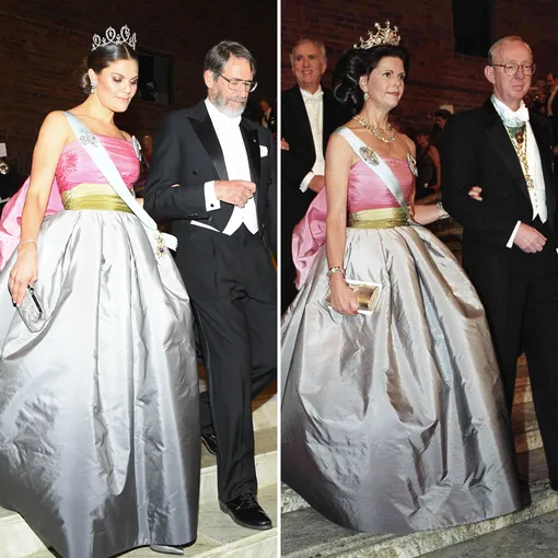 Ещё немного о кронпринцессе Виктории. Она не только передаёт свои платья дочери, но и иногда совершает набеги на гардероб матери – вот такая преемственность поколений. Речь о винтажное платье от Nina Ricci, которое 46-летняя Виктория надела на банкет по случаю вручения Нобелевской премии в ратуше Стокгольма в декабре 2018 года. Глядя на фотографию, сложно поверить, что наряду почти 25 лет! Впервые он был замечен на королеве Сильвии аж в 1995 году. С предпочтениями не смогли определиться: делим пальму первенства на двоих.
