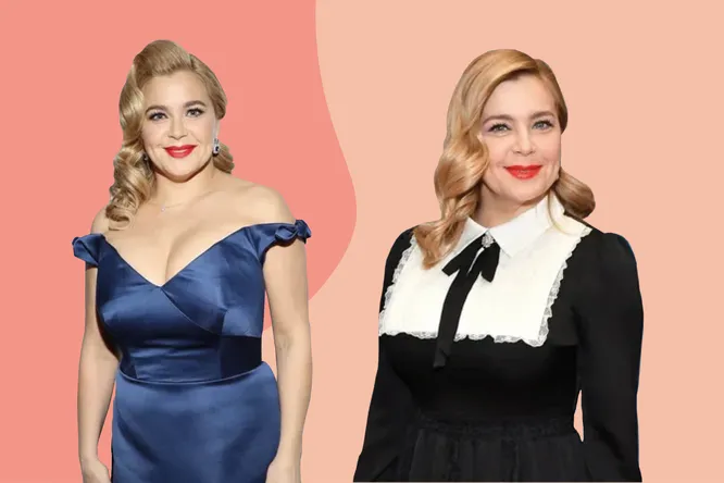 Для женщин плюс сайз и женщин с большой грудью очень важно, чтобы наряд выглядел хорошо структурированным и аккуратным. Это значит — четкие линии, плотные ткани, color blocking и четкий принт. Если оверсайз — то не мешковатый, а как в этом образе Ирины Пеговой в бледно-розовом деловом костюме: с хорошим аккуратным воротником и внятной посадкой по плечам.