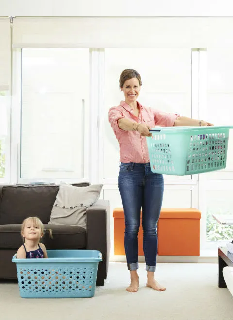 В начале упражнения поднимите бельевую корзину пять раз на уровень груди. Затем сделайте по 5 выпадов вперед каждой ногой, пока загружаете стиральную машину. Для сложного уровня делайте выпад на бортик ванной. Осторожно, не стоит делать это на мокром кафеле или в скользкой обуви!