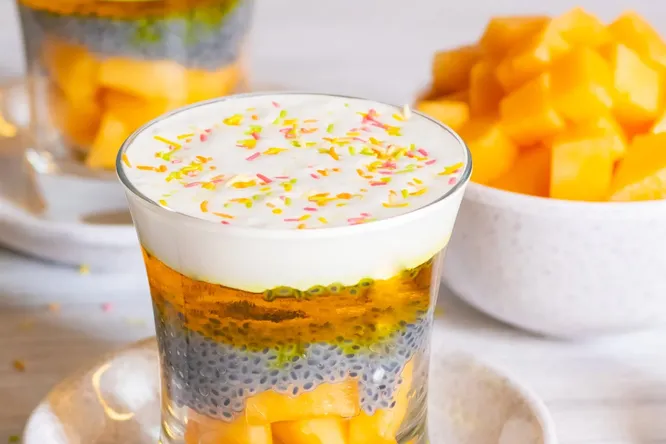 Можно также приготовить десерты с семенами чиа. Один из самых популярных — молочный пудинг с чиа и манго. Для его приготовления вам нужно будет замочить семена в миндальном молоке и оставить на ночь в холодильнике. В готовый пудинг можно добавить орехи, ягоды, сухофрукты и мёд. Такой завтрак с семенами чиа зарядит вас энергией на весь день.