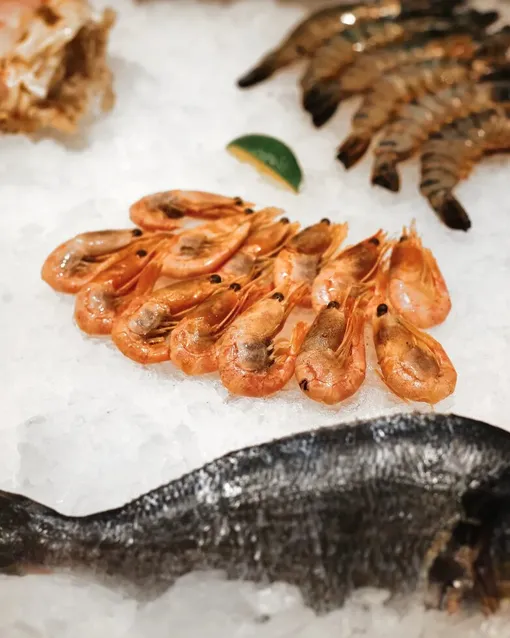 Рыбу и морепродукты поставляют ежедневно, что позволяет поддерживать абсолютную свежесть продукта, представленного на ледяной витрине.