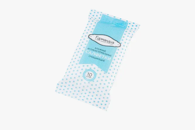 Гурмандиз, Влажные антибактериальные салфетки, 28 руб за 10 шт.