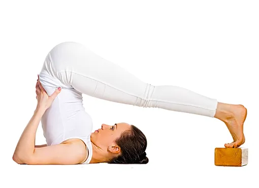 Постелите на пол сложенное одеяло или коврик для йоги. Лягте на него спиной так, чтобы голова и позвоночник находились на одной линии, ноги были прямыми, а стопы — вместе. Напрягая мышцы живота, медленно поднимите прямые ноги, таз и поясницу, чтобы получилось положение «березка».