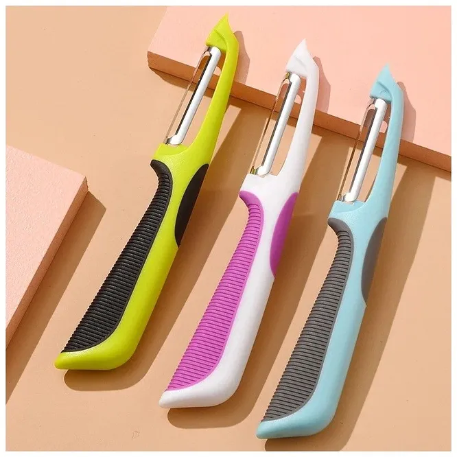 Ушки сбоку или заостренный конец у вертикальных пиллеров нужны для глазков и прочих дефектов, которые нужно быстро удалить, а также для косточек и сердцевинок. Заостренный конец овощечистки также помогает чистить цитрусовые.