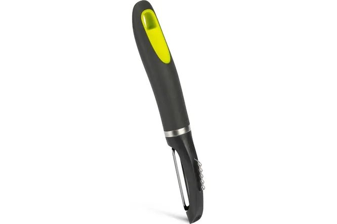 Очень острый инструмент из нержавеющей стали, при чистке не приходится прикладывать никаких усилий, ручка удобно лежит в руке, лезвие может поворачиваться на 90 градусов, поэтому обе овощечистки подходят и для правшей, и для левшей.