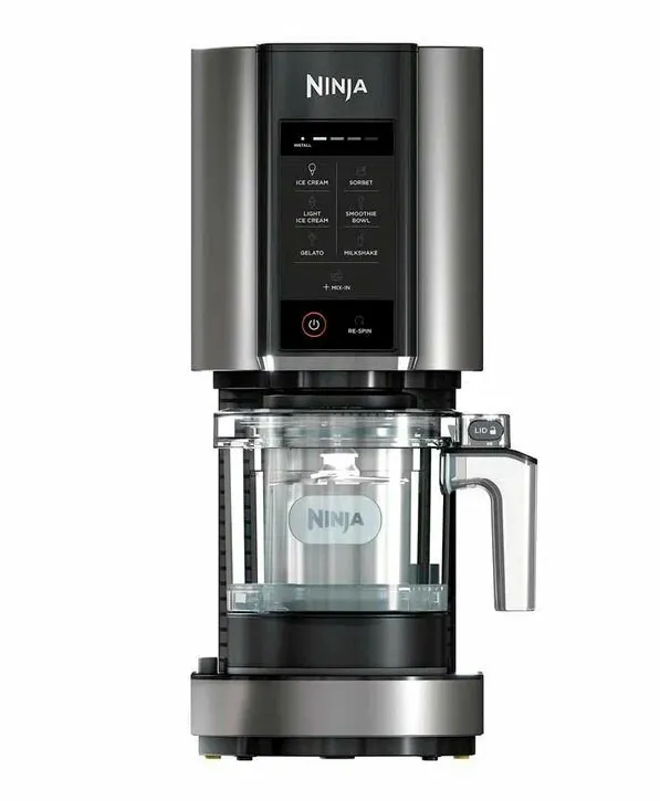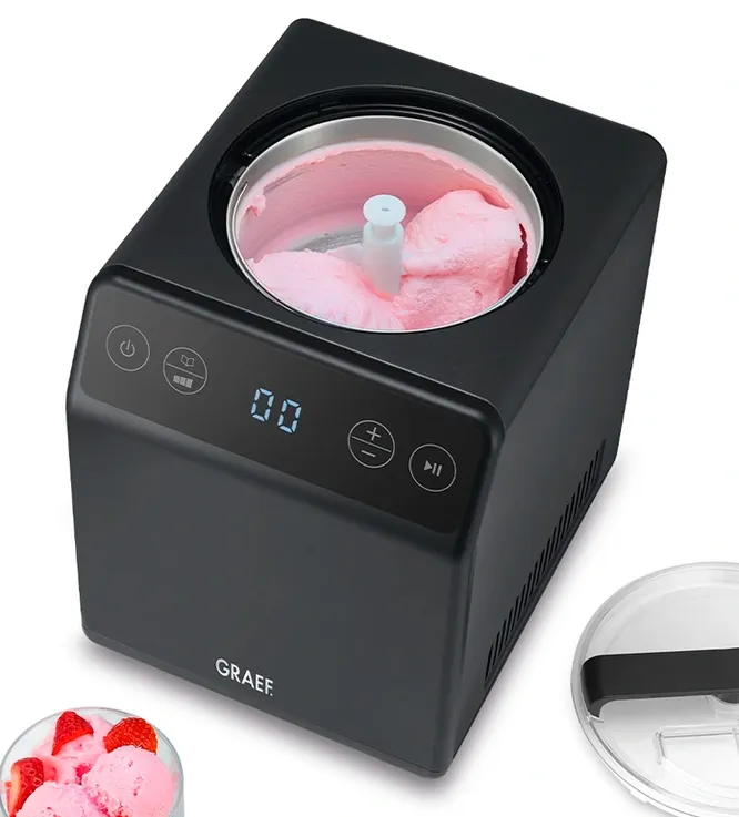 Мягким мороженым может стать смесь на основе творога, йогурта, любых фруктов и ягод. В меню 7 программ: мороженое, джелато, сорбет, смузи-боул, легкое мороженое, молочный коктейль и перемешивание. Есть возможность добавления топпингов: орехов, карамели и печенья. Они сохраняют свою структуру, если использовать программу смешивания. Управление сенсорное – у каждой программы отдельные кнопки. Общее время приготовления: 24 часа + 5 минут. Контейнеры можно докупать.