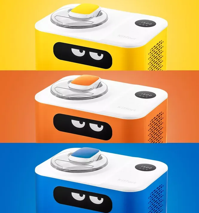 При перегрузке мотора мороженица автоматически отключается, что предотвращает поломку двигателя. Предложено три варианта цвета корпуса.