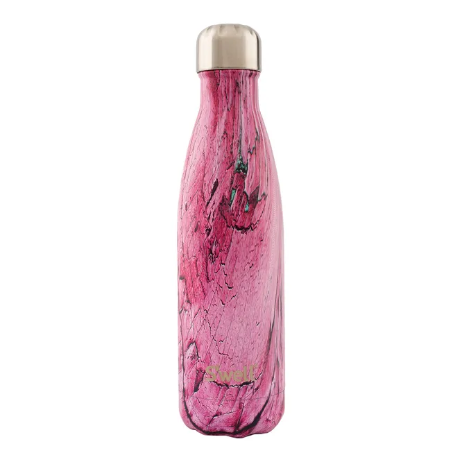 Эта бутылка устроена очень просто: цельнометаллический корпус, вакуумная колба из нержавеющей стали и герметичная пробка на резьбе. За счет своей простоты, термобутылка надежна, практична и удобна. Хорошо сохраняет температуру напитков, лёгкая, помещается в карманы рюкзаков и сумок, и в автомобильный подстаканник! Кроме того, бренд часто выпускает новые цвета и дизайны, так что выбор у них огромный. Нам понравился тот, что на фото: с полуматовым покрытием, имитирующим древесину в благородных тонах вишневого цвета.