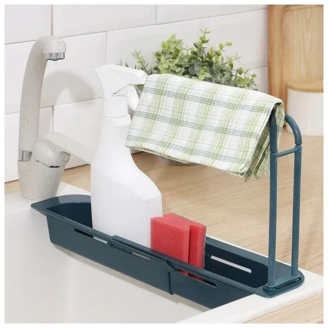 Такой держатель на раковину универсальный, так как можно раздвинуть и подогнать под размер любой мойки, главное, чтобы она не была крошечной. У подставки много отверстий, через которые свободно стекает вода. Для губок и мочалок подходит идеально, но главное, что в него можно поставить и средство для мытья посуды, и просушить влажную салфетку. Смотрится аккуратно и в отличие от большинства органайзеров, этот легко мыть.