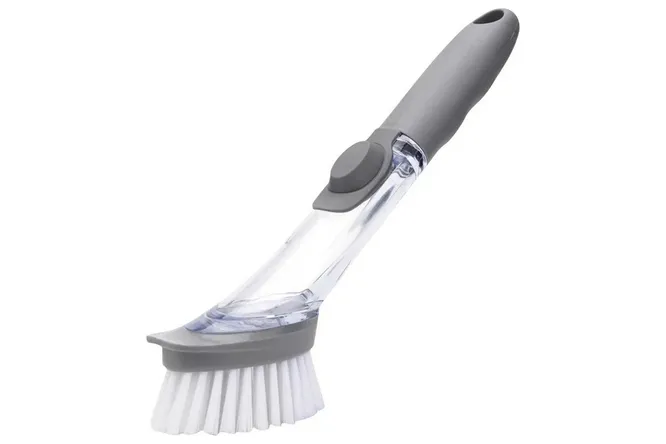 Да, технически – это кухонный девайс, но мы обнаружили, что он прекрасно подходит и в качестве подручного чистящего средства для ванны, раковины и плитки. Он недорогой, лёгкий, компактный. Удобная кнопка позволяет дозировать чистящее средство и расходовать его экономно, при этом нет контакта бытовой химии с кожей рук. Держать его в шкафчике под мойкой — удобный лайфхак, позволяющий сэкономить время на уборку.