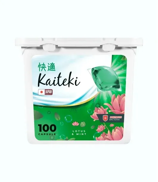 Капсулы с ароматом мяты и лотоса подходят для ежедневной стирки белья. Оболочка капсул расворяется в барабане за пару минут, стиральный порошок обеспечивает отличное качество стирки и сохранение яркости цветных и белых вещей, обладает антибактериальным эффектом, убивая до 99,9% бактерий, подходит для ежедневной стирки на коротких циклах при низких температурах, не наносит вреда окружающей среде и может быть использован для дачных септиков.