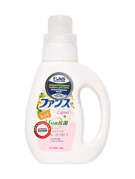 Этот гель выпускает один из популярных японских брендов FUNS. Средство моментально растворяется в воде и вымывается с тканей за одно полоскание, действует как кондиционер, смягчая волокна тканей, приятно пахнет фруктами (в линейке есть и другие ароматы) и обладает антибактериальным эффектом, который длится 24 часа после стирки.