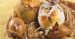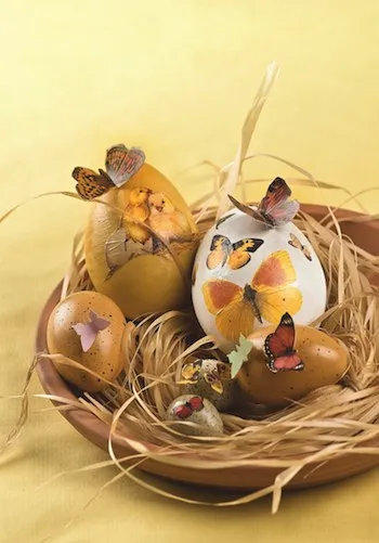 Украсить яйца с помощью техники декупажа не так сложно, как кажется. Вырежите из салфетки понравившуюся картинку: бабочку, птичку цветок