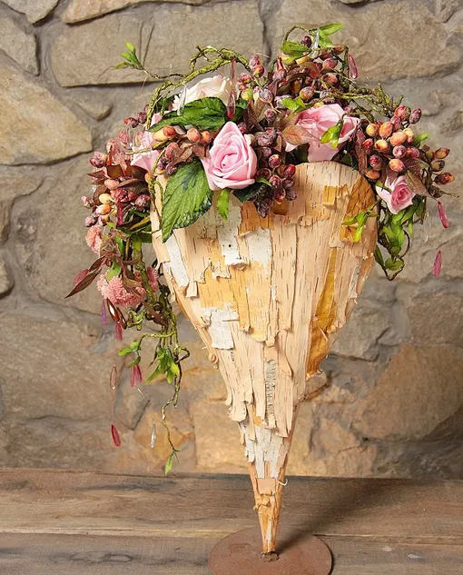 - ваза в форме сердца (мы выбрали пластик, отделанный берестой)