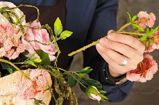 Благодаря ей композиция станет еще более оригинальной. Все готово — остается только расправить цветы и растения.