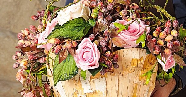 - ваза в форме сердца (мы выбрали пластик, отделанный берестой)