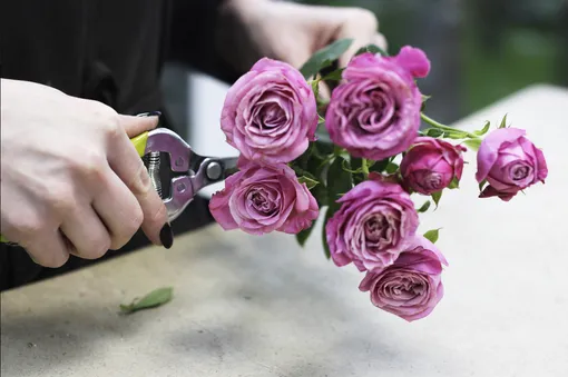 Бутоны цветов и листья зелени отрезаем от основного стебля, оставляя ножку 3 — 4 см.