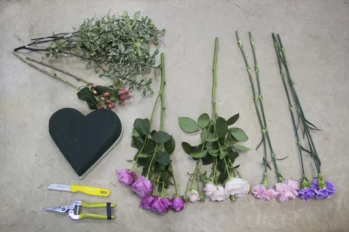 Для изготовления композиции в виде цветущего сердца нам понадобятся: