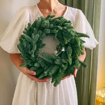 Кстати, флористы, считают, что пихта нобилис – идеальный выбор для венка. Она надолго сохраняет свежесть и форму, не осыпаясь в течение 4-6 недель. Мягкая, приятная на ощупь хвоя безопасна и удобна в работе, а после высыхания венок сохраняет изысканную красоту и становится долговечным украшением.
