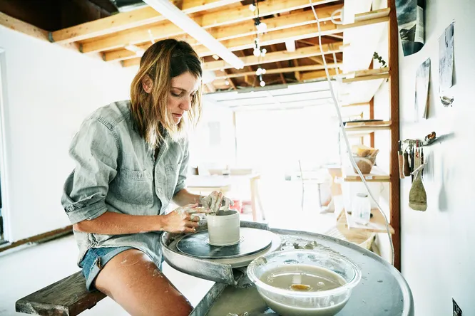 Сначала нужно купить глину и все материалы, создать эскиз, слепить форму и отправить сушиться на пару недель, после этого обжечь и покрыть изделие глазурью. Подробно о процессе ручной лепки расскажут в одной из лучших школ керамики Angry Potter, а также научат работе на гончарном круге и покажут процесс глазуровки. Преподаватели школы убеждены, что обучение и навыки — это не то, что вы получаете случайно.