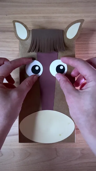 Когда все части лица у вас разместились пропорционально и вас устраивает результат, приступаем к чистовику. Все эти детали нужно вырезать на цветной бумаге. Я использовала бумагу для пастели. Она плотная и у нее благородная цветовая гамма. Для облегчения работы, чтобы заново не рисовать части лица, можно вырезать овал носа и уши из черновика (дубликата упаковки, на котором рисовали лошадь), и обвести их на цветной бумаге с помощью карандаша. Две детали ушей сперва обведите при помощи большой капли, меняя ее зеркально. После вырежьте в ней нарисованную меньшую каплю и так же обведите на бумаге другого цвета, меняя ее зеркально для двух деталей.
