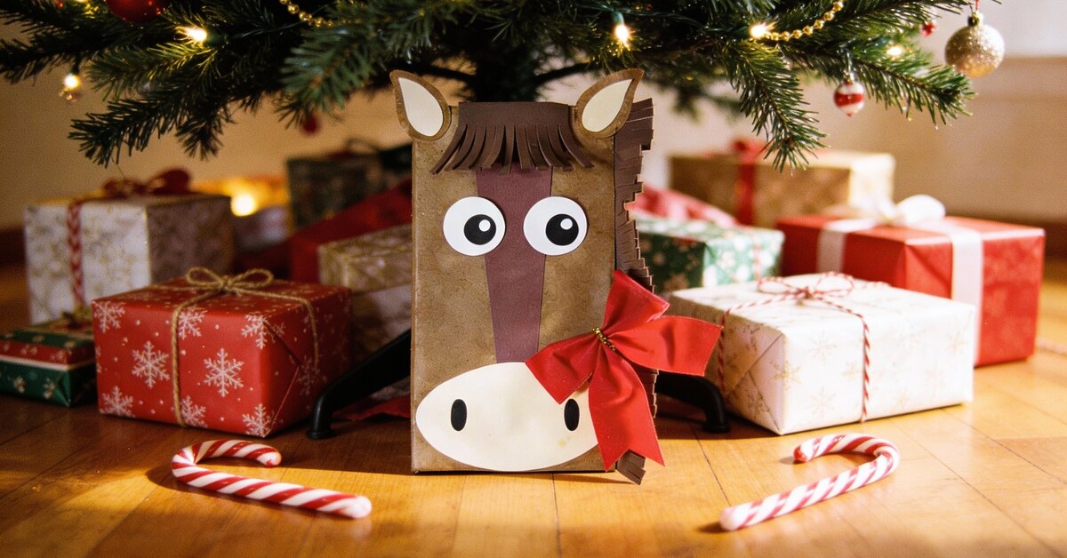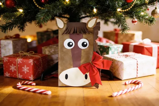 Идея новогодней упаковки подарка с симпатичной лошадью