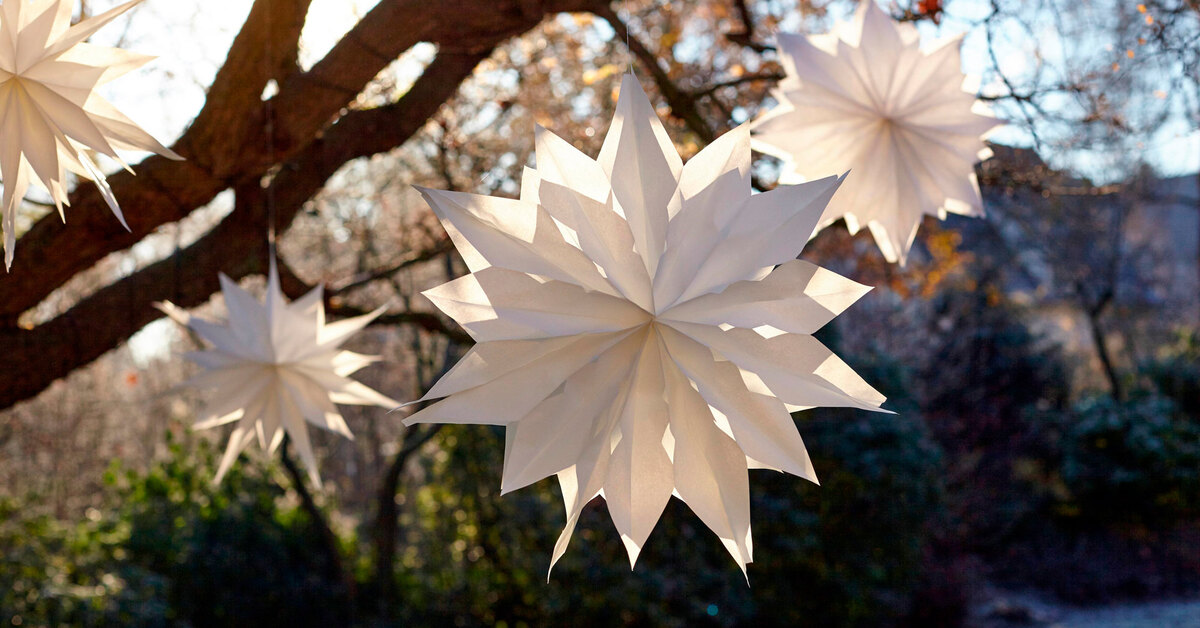 Заключительный этап: потяните полукруги друг к другу и раскройте свою снежинку! Чтобы она держала форму, закрепите края маленькой скрепкой. Когда праздники закончатся, снежинку можно будет сложить и убрать до следующего торжественного случая.