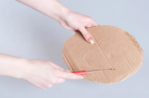 Из картона вырежьте окружность диаметром около 20 сантиметров. Из круга вырежьте кольцо, отступив от краев примерно 5 сантиметров. Получившееся кольцо будет служить основой для каркаса.