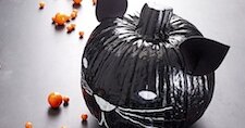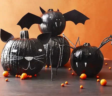 Если хочется сделать из тыквы летучую мышь, приклейте по бокам крылья из плотного фетра черного цвета.