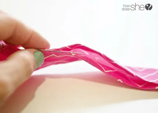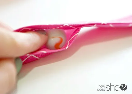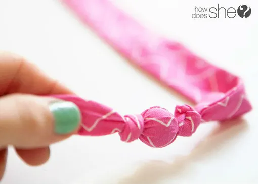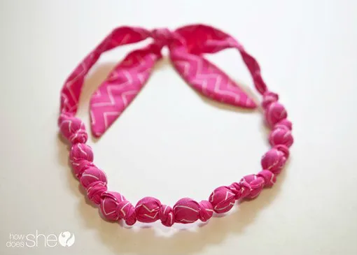 Скручиваем ткань вместе с бусиной.