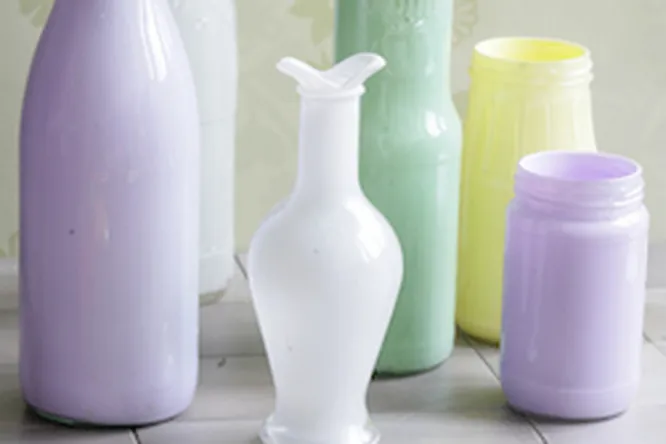 из окрашенных бутылок.