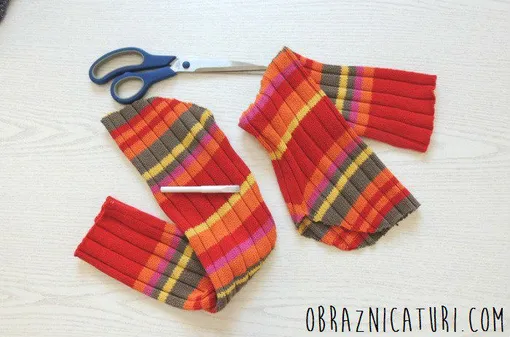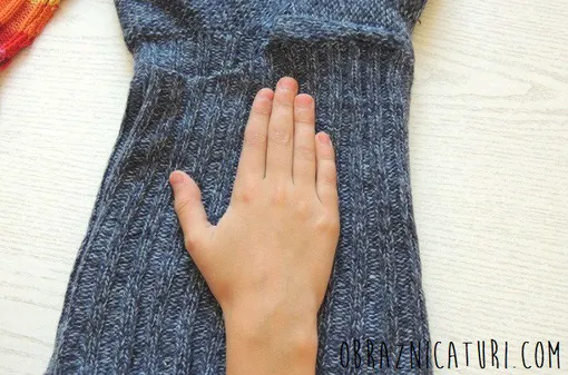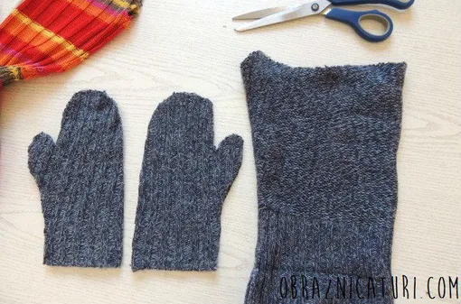 Точно так же из обычных рукавов свитера. Когда будете примерять руку, помните, что рукавица должна закрывать запястье.
