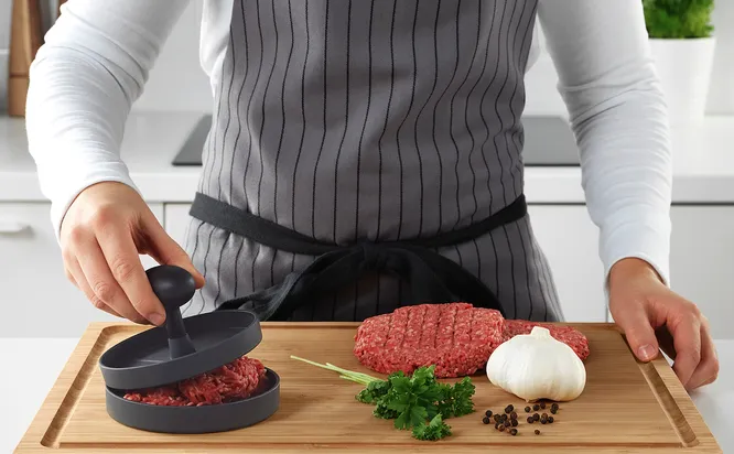 С таким гаджетом можно легко готовить дома бургеры идеальной формы. Рельефная поверхность пресса придает котлете аппетитный вид, как будто она приготовлена на гриле, а благодаря специальному покрытию фарш не прилипает к поверхности.