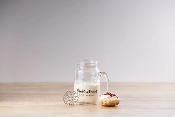 Приготовить взбитые сливки для десертов и коктейлей в домашних условиях теперь проще простого! Возьмите банку, поместите туда спираль, налейте сливок, плотно закройте крышкой и как следует взболтайте. Меньше чем за минуту восхитительные нежные сливки будут готовы!