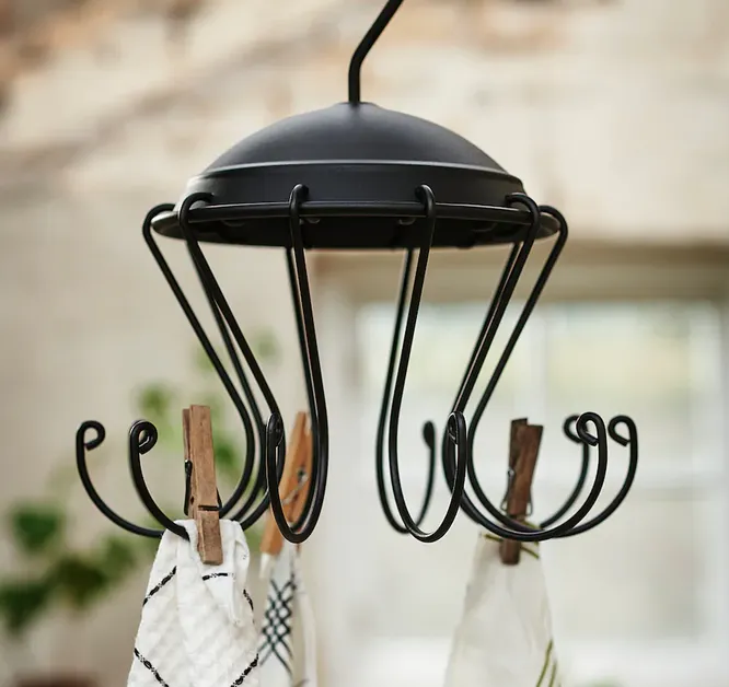 Удобная вешалка со множеством крючков не требует дополнительного крепления и подойдет для экономии места.