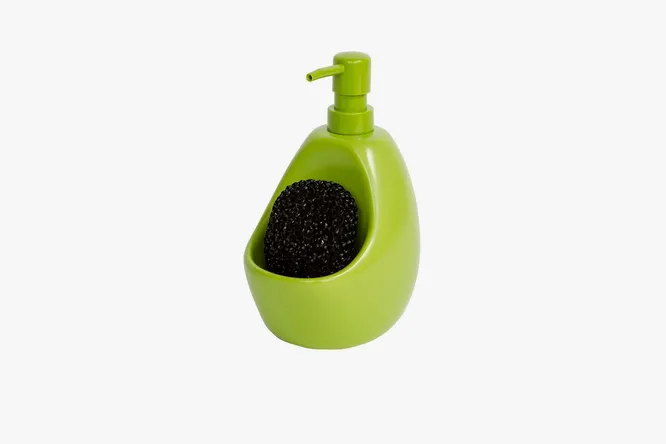 Этот диспенсер – одна из новейших разработок дизайнеров канадского бренда Umbra. Он одновременно предназначен для хранения моющего средства и губки для мытья посуды. Керамическая емкость жизнерадостного оттенка снабжена дозатором с длинным носиком и удобным «карманом», в который удобно положить губку.