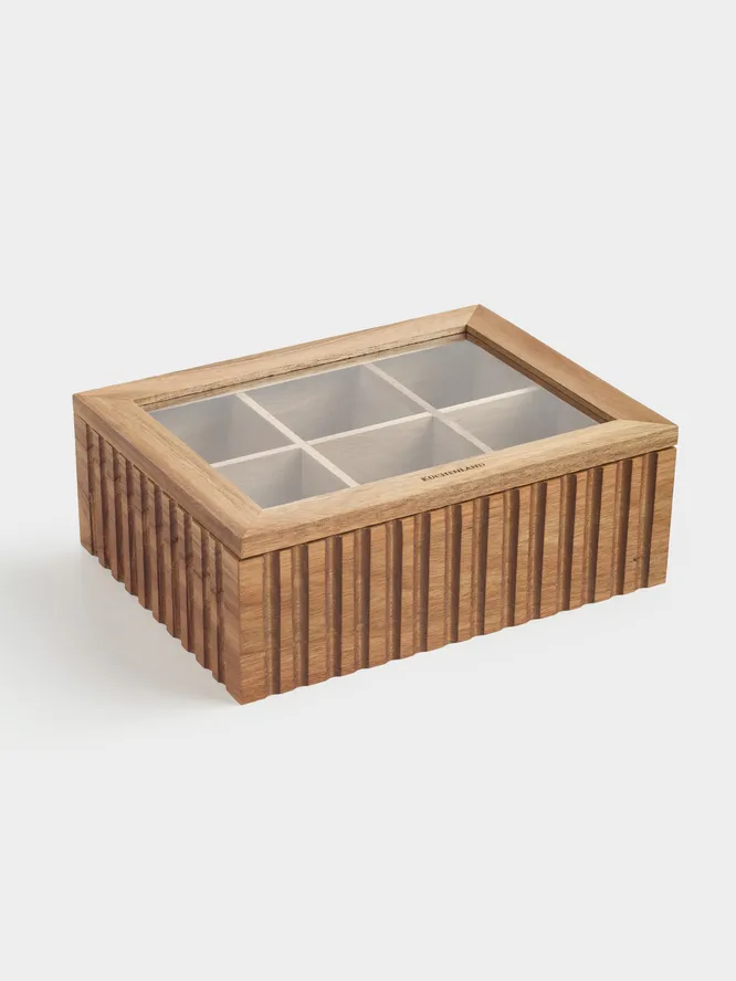 Эко-коробка для чая из натурального дерева заменит сразу несколько неприглядных фабричных упаковок. Коллекционируйте вкусы в шести изолированных отсеках и красиво сервируйте чай гостям. А вести контроль за запасами поможет стеклянная вставка на крышке, что нечасто встречается в подобных изделиях.