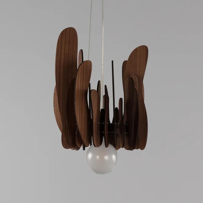 Дизайнерский светильник из дерева и металла понравится тем, кто ценит индивидуальный подход к дизайну и нестандартные формы. Стильный абажур из тонких деревянных «нитей» может стать акцентом в интерьере гостиной, кухни или прихожей.