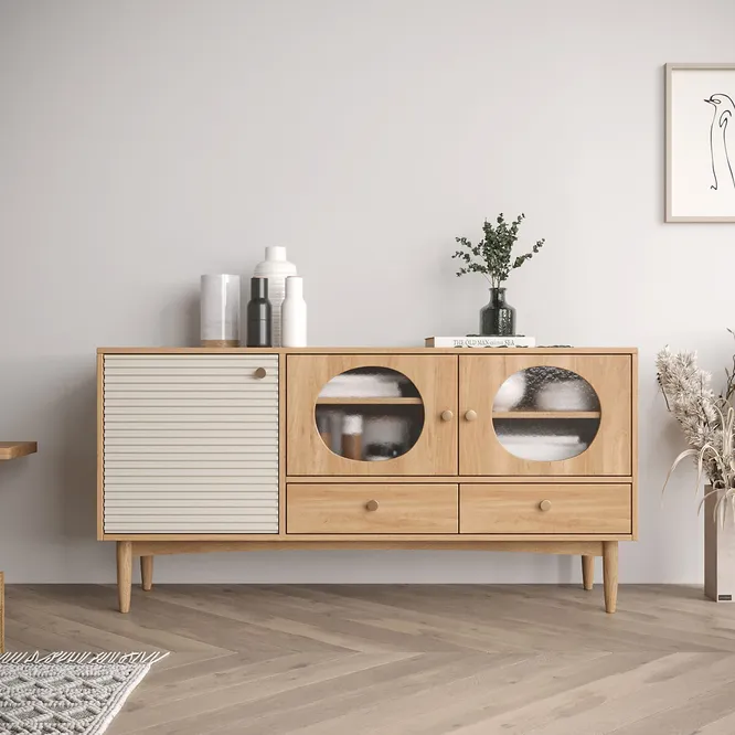 Деревянная мебель составляет основу многих интерьеров. Например, этот массивный вместительный комод вполне может стать центральным элементом гостиной. Разница в текстуре материалов придаёт изделию уникальность, а ретро-стиль добавляет очарования.