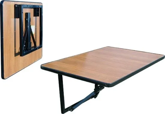 Отличное решение для маленькой кухни или небольшой комнаты — навесной складной стол. Его преимущество — компактность, позволяющая значительно экономить пространство. Достаточно только прикрепить столик к стене, а при необходимости разложить его. Откидной навесной стол хорошо подойдёт не только для кухни, но и детской, например, где ребёнку необходимо много места для игр, или для гостиной — как рабочее место. Небольшой предмет мебели может выполнять функции как обеденного кухонного стола, так письменного и компьютерного.