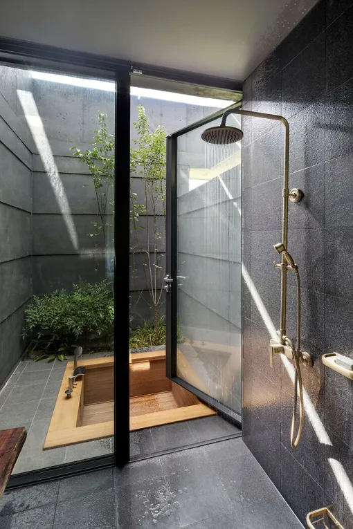 Ванна из дерева в крошечном дворике, провинция Кёнгидо, Южная Корея