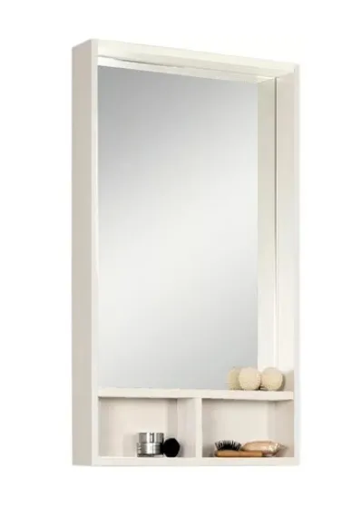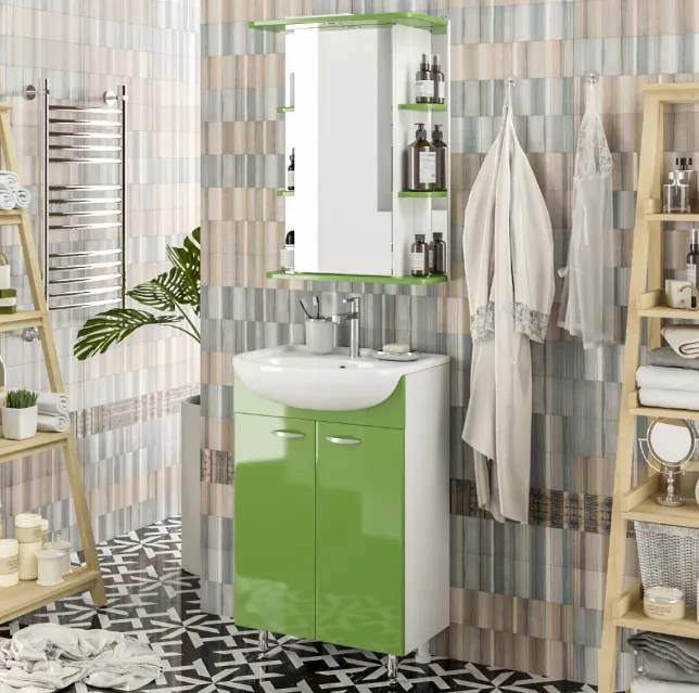 Модель «Гиро» с открытыми и закрытыми полками за зеркальной дверью соединяет в себе сразу и зеркало, и шкафчик для косметических принадлежностей. Это отлично экономит пространство маленькой ванной комнаты. Кроме того, зеркало оборудовано подсветкой и розеткой, так что проблем с освещением не будет! Зеркало-шкаф представлено в четырех расцветках: молочного шоколада, топленого молока, зеленого яблока и слоновой кости.