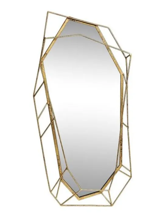 Золотистая рама с сетчатым плетением по форме напоминает бриллиант — оригинальное решение для тех, кто любит «изюминку» в каждой детали! Идеально подойдет для прихожей или спальни. Размер зеркала: 43*85 см.