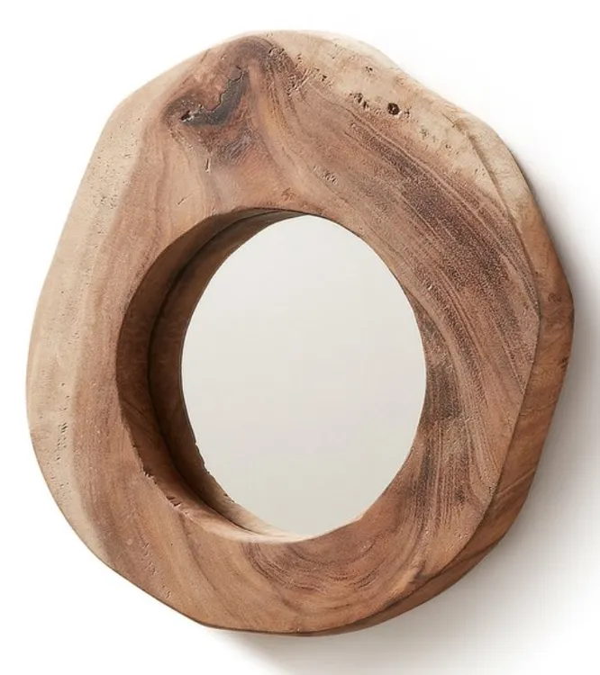 Дизайнерское зеркало в массивной асимметричной раме из искуствено состаренного дерева. Такая деталь интерьера придется по вкусу любителям стиля «лофт», а также поклонникам минимализма с природными мотивами. Занимает мало места и подойдет даже для самой компактной комнаты.