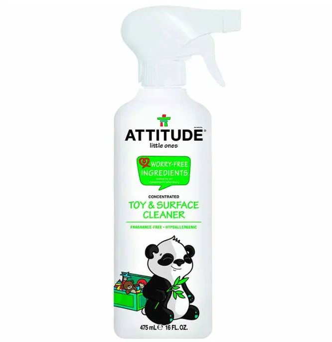 Игрушки требуют особого внимания при уборке, ведь малыши любят тащить в рот все, что попадается под руки. Очиститель Attitude Citrus Zest в виде удобного спрея подходит для всех видов поверхностей в детской комнате и игрушек.