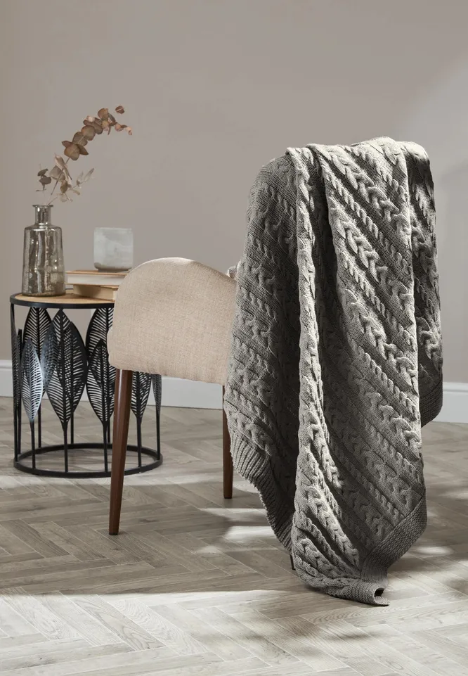 Вязаный плед — ещё один символ тепла в преддверии грядущих холодов. Его характерная текстура и объемные узоры притягивает к себе, вызывая желание закутаться посильнее в зимние и осенние вечера.