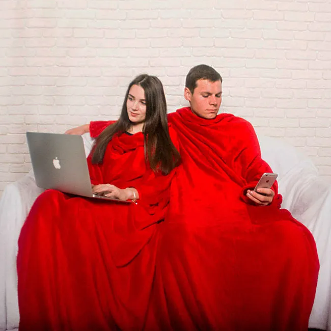 В продаже можно найти также плед с рукавами, расчитанный для двоих. В таком, конечно, за чаем не походишь, но вот для просмотра кино прохладным вечером — идеально.
