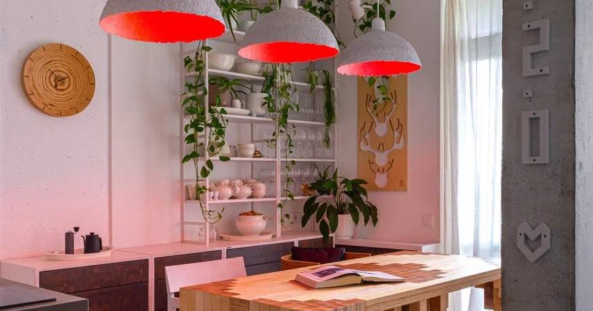 В интерьерах появляется все больше высокотехнологичных решений. Такие проекты рождаются на пересечении с трендом на экологичность. Регулируемые с помощью системы «умный дом» цветовые лампы позволяют добавлять в обстановку новое настроение, просто изменив тон освещения. Таким образом, интерьер будет актуален всегда, стоит только дать команду голосовому помощнику — и кухня переходит из одной цветовой палитры в другую.